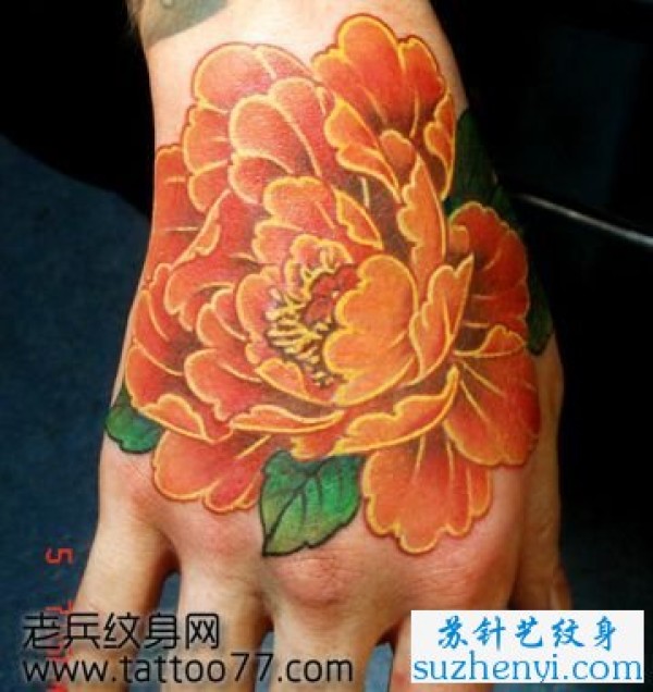 手背彩色牡纹身_手臂纹身图案大全_纹身图吧