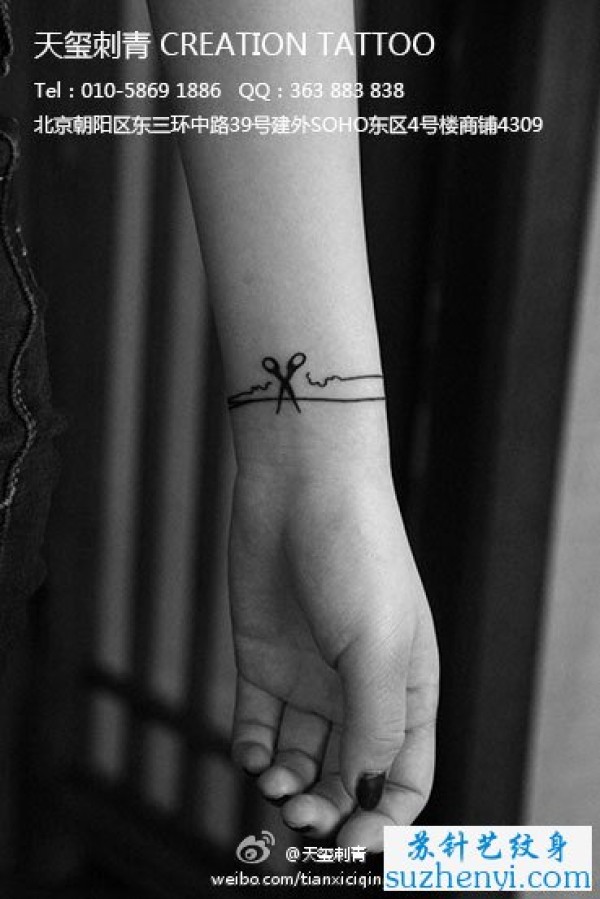 手腕处小剪刀手链纹身_手臂纹身图案大全_纹身图吧