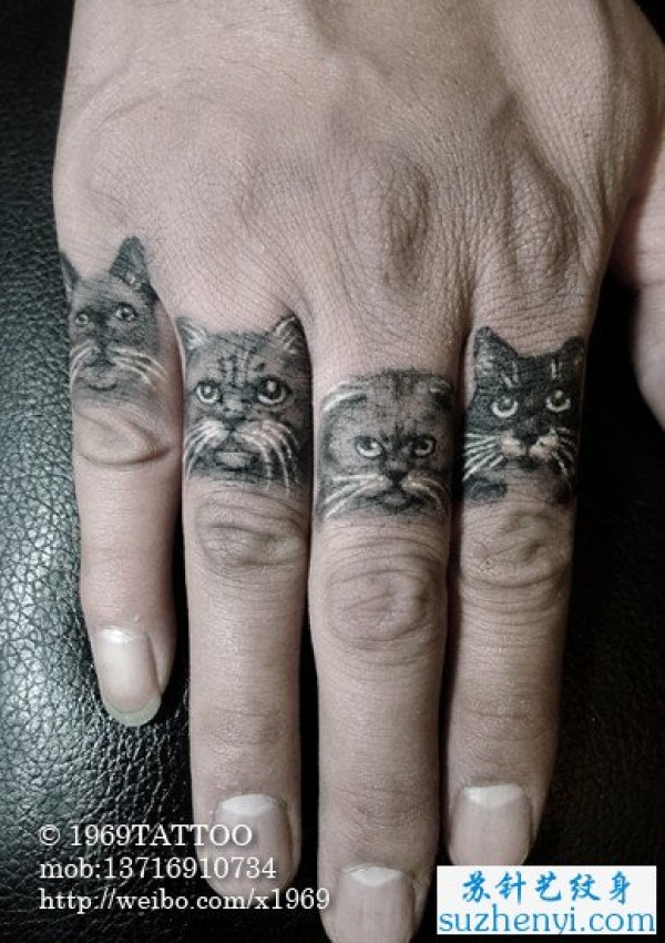 手指猫咪纹身_手臂纹身图案大全_纹身图吧