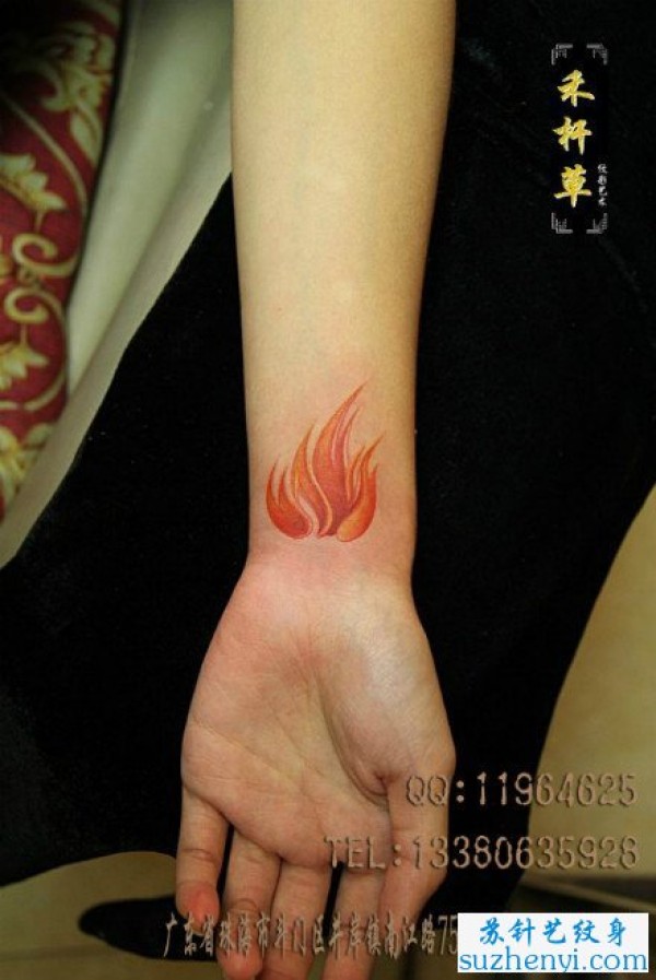 手腕处彩色火焰纹身_手臂纹身图案大全_纹身图吧