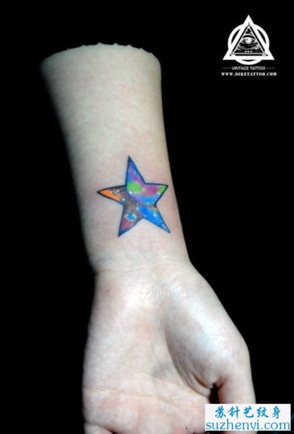 手腕彩色五角星纹身图案_手臂纹身图案大全_纹身图吧
