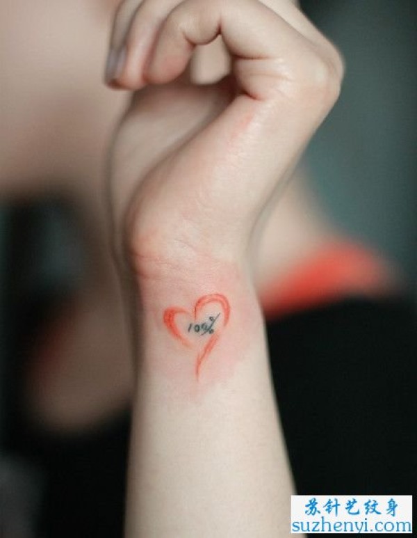 手腕处彩色小爱心纹身_手臂纹身图案大全_纹身图吧