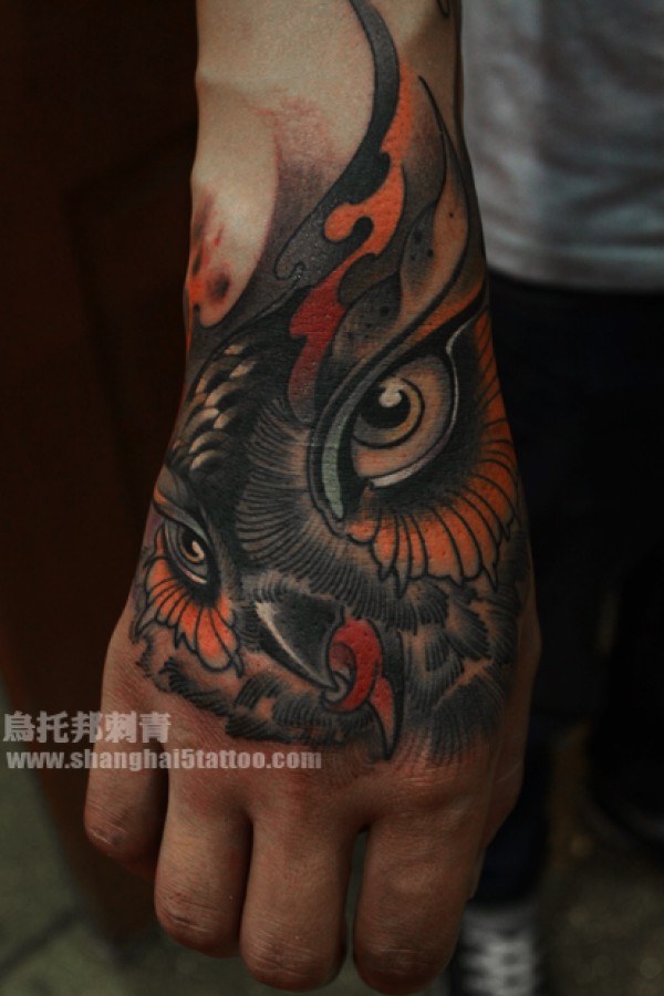 手背猫头鹰_手臂纹身图案大全_纹身图吧