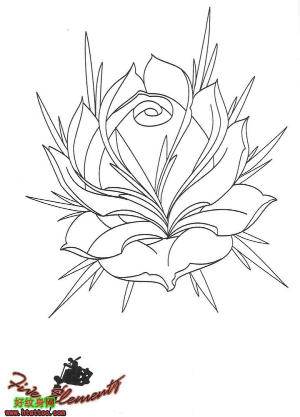 old school风格的花素材带线稿分享二照片 030.jpg_school纹身图案大全_纹身图吧