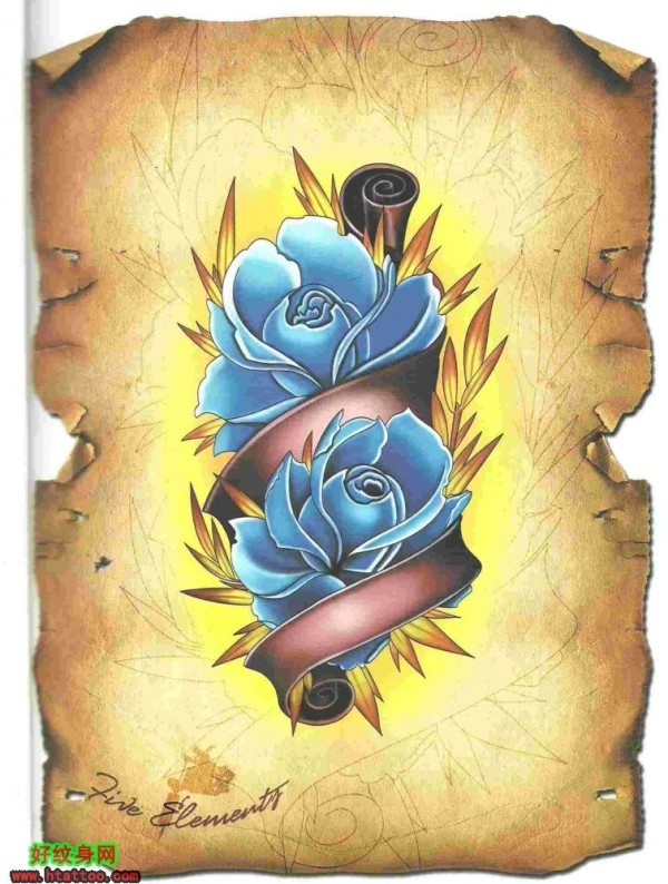 old school风格的花素材带线稿分享一照片 015.jpg_school纹身图案大全_纹身图吧