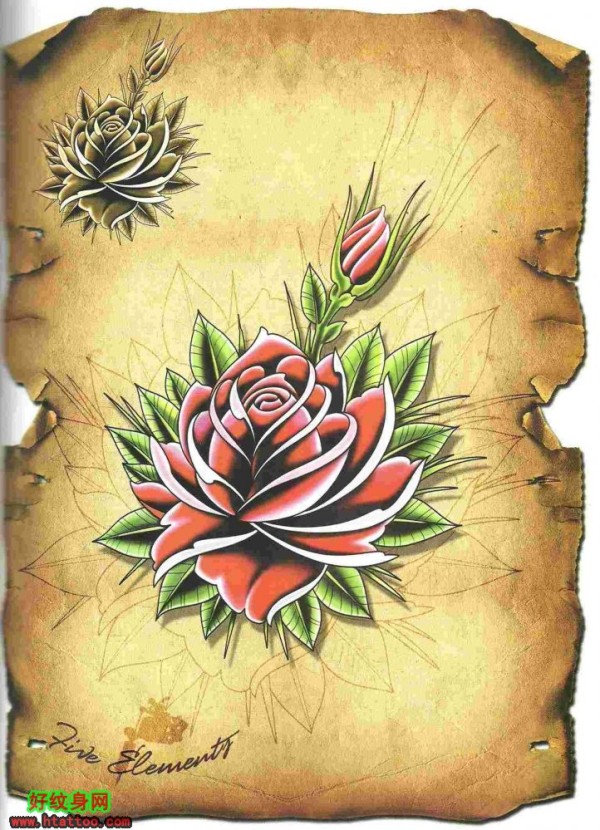 old school风格的花素材带线稿分享三照片_school纹身图案大全_纹身图吧