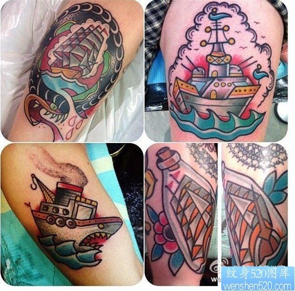 一组school风格的帆船纹身图案_school纹身图案大全_纹身图吧