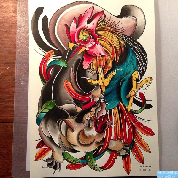 纹身520图库推荐一幅彩色school风格纹身作品_school纹身图案大全_纹身图吧