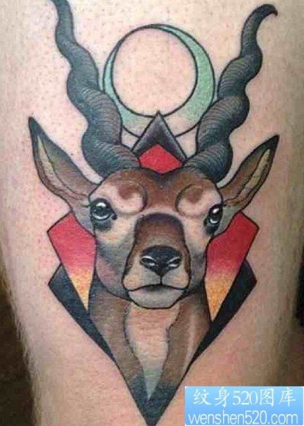 腿部school风格彩色羚羊纹身图片_school纹身图案大全_纹身图吧