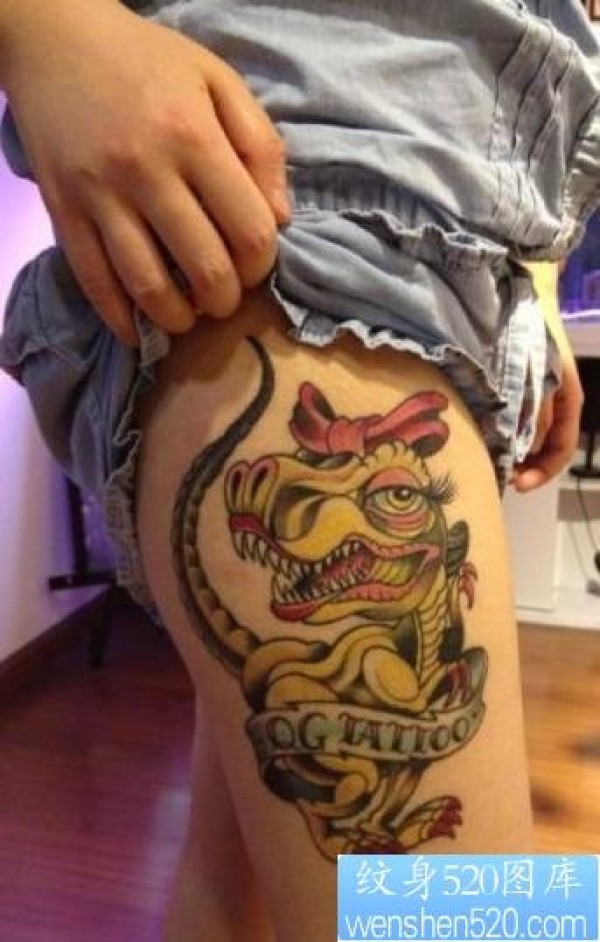 school大腿恐龙纹身图片由纹身520图库推荐_school纹身图案大全_纹身图吧
