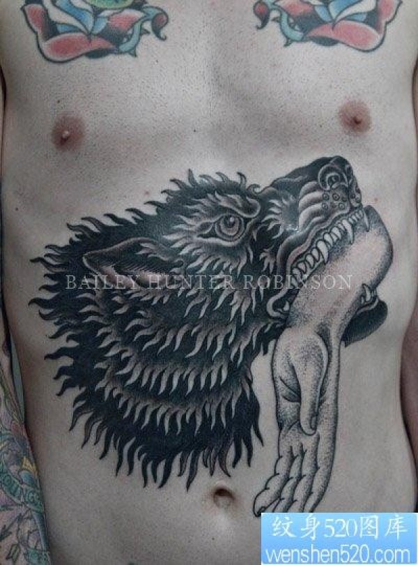 男生腹部超酷的school狼头纹身作品_school纹身图案大全_纹身图吧