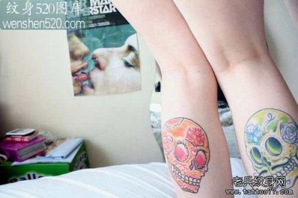 时尚漂亮的腿部new school骷髅纹身图案_school纹身图案大全_纹身图吧