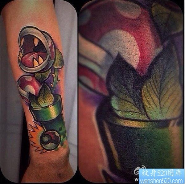 手臂school玛丽食人花纹身图案_school纹身图案大全_纹身图吧