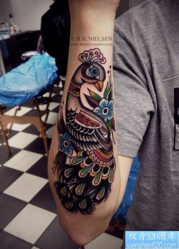胳膊school孔雀纹身图案_school纹身图案大全_纹身图吧