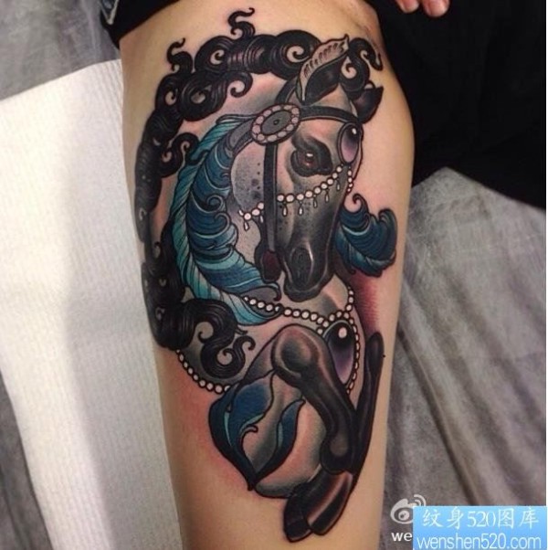 一幅胳膊彩色school风格马纹身图片由纹身520图库_school纹身图案大全_纹身图吧