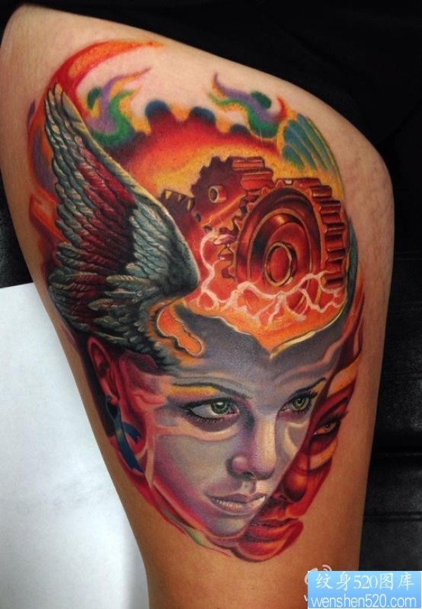 手臂school风格女郎纹身图片由纹身520图库推荐_school纹身图案大全_纹身图吧