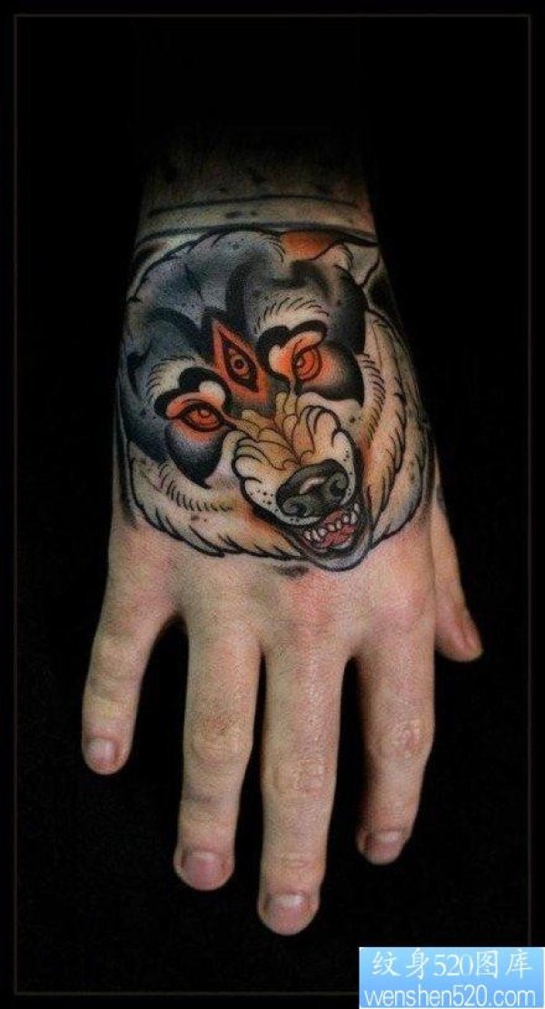 男生手背超酷的school狼头纹身作品_school纹身图案大全_纹身图吧