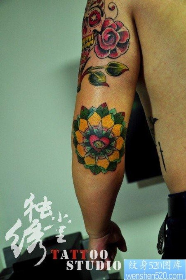 手臂漂亮的new school花卉纹身图片_school纹身图案大全_纹身图吧