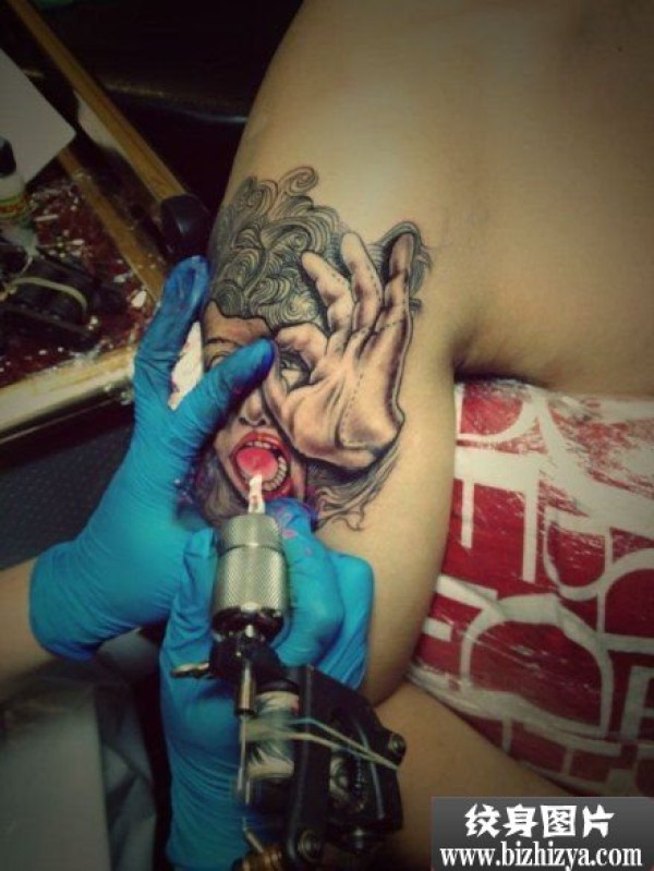new school风格大臂小丑纹身图案图片_school纹身图案大全_纹身图吧
