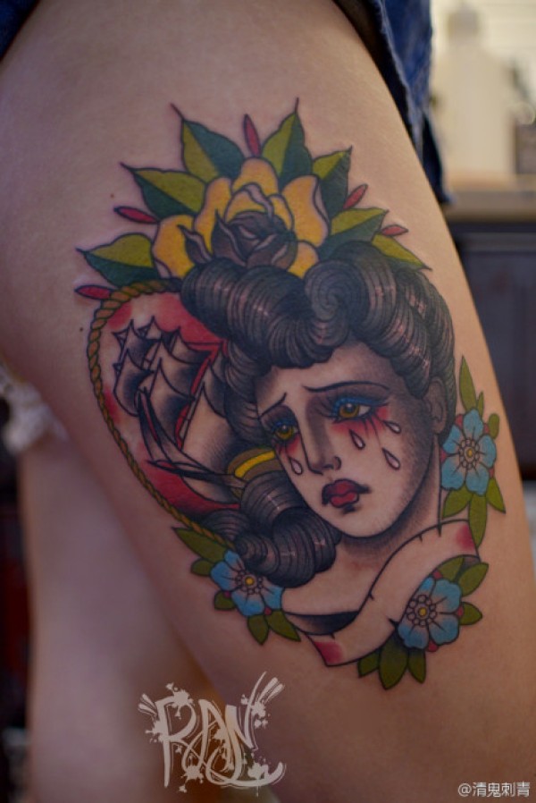 女生腿部潮流的流泪school女郎纹身图案_school纹身图案大全_纹身图吧