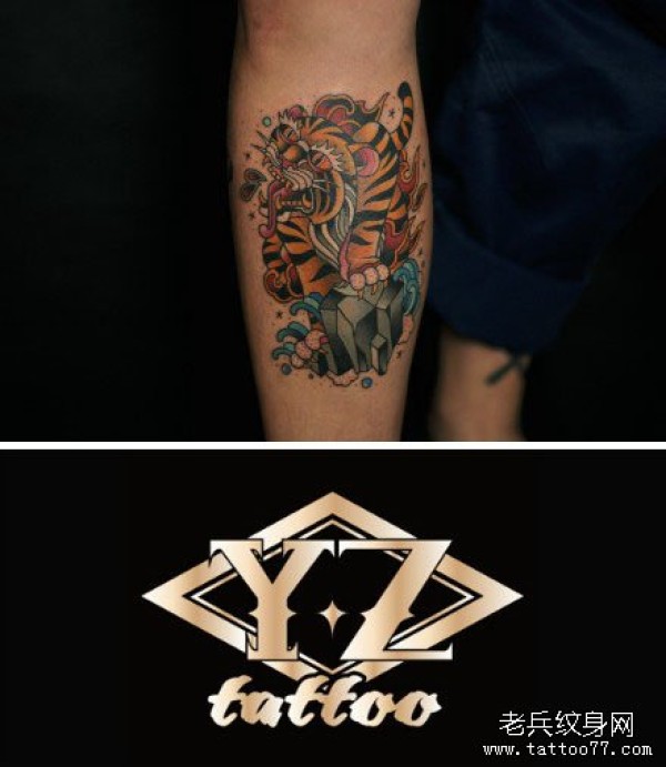 腿部经典超酷的一款欧美school老虎纹身图案_school纹身图案大全_纹身图吧
