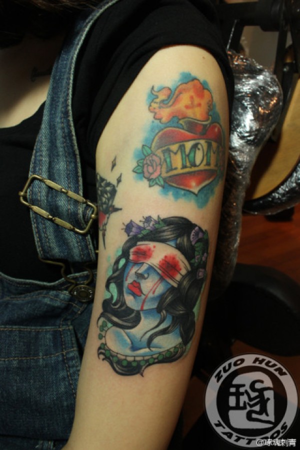 手臂另类漂亮的school风格的美女纹身图案_school纹身图案大全_纹身图吧