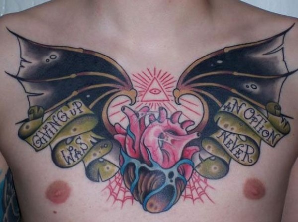 男人前胸超酷的old school心脏与翅膀纹身图案_school纹身图案大全_纹身图吧