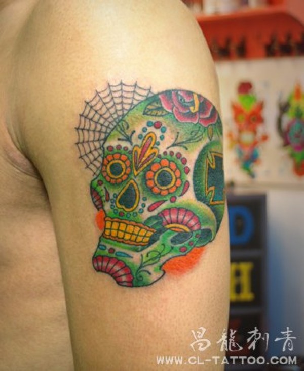 School骷髅纹身最潮纹身图案最新彩色文身_男士_school纹身图案大全_纹身图吧