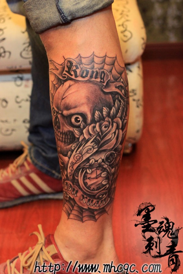 school风格小腿骷髅_school纹身图案大全_纹身图吧
