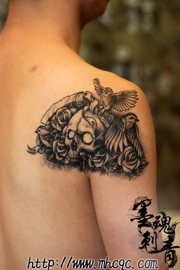 黑白school风格骷髅纹身_school纹身图案大全_纹身图吧