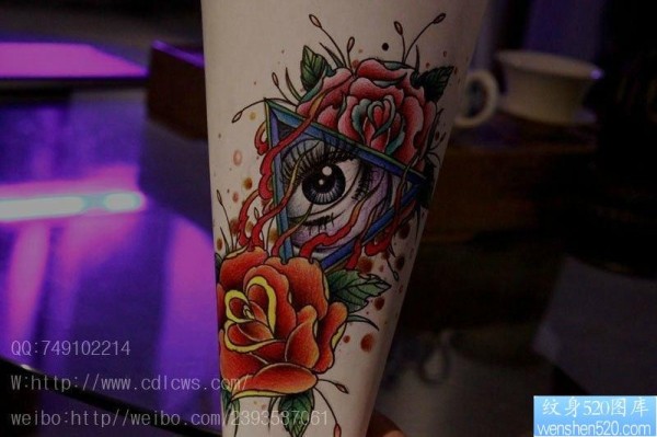 一幅欧美玫瑰花上帝之眼文身图片由纹身520图库_上帝之眼图案大全_纹身图吧