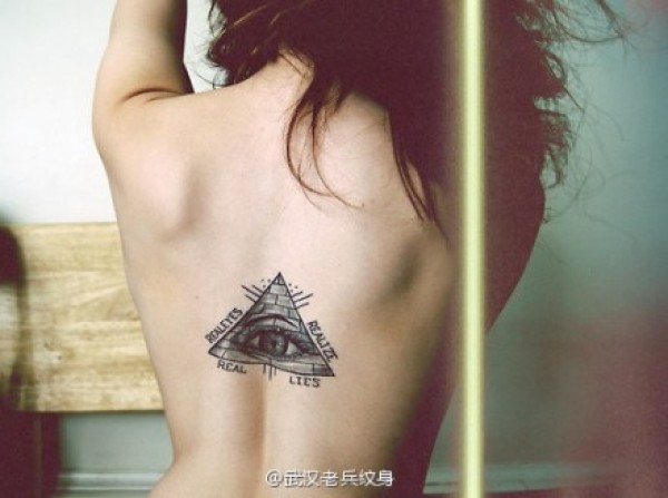 武汉纹身馆推荐一款女性背部上帝之眼纹身图案_上帝之眼图案大全_纹身图吧