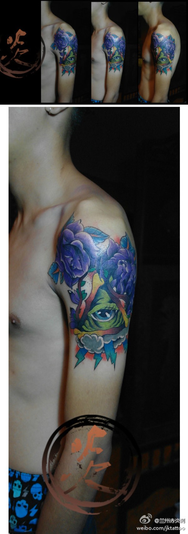 手臂潮流经典的一款上帝之眼与玫瑰纹身图案_上帝之眼图案大全_纹身图吧