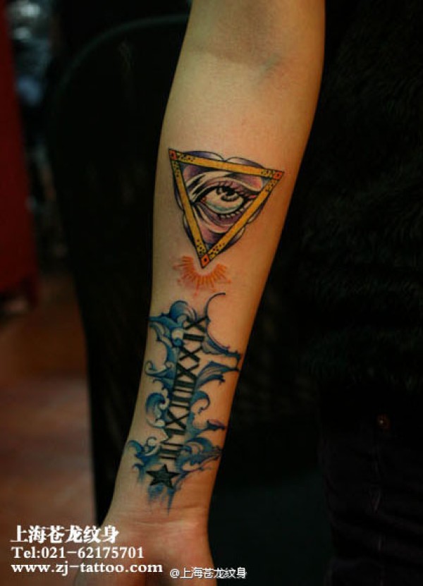 手臂经典时尚的上帝之眼纹身图案_上帝之眼图案大全_纹身图吧