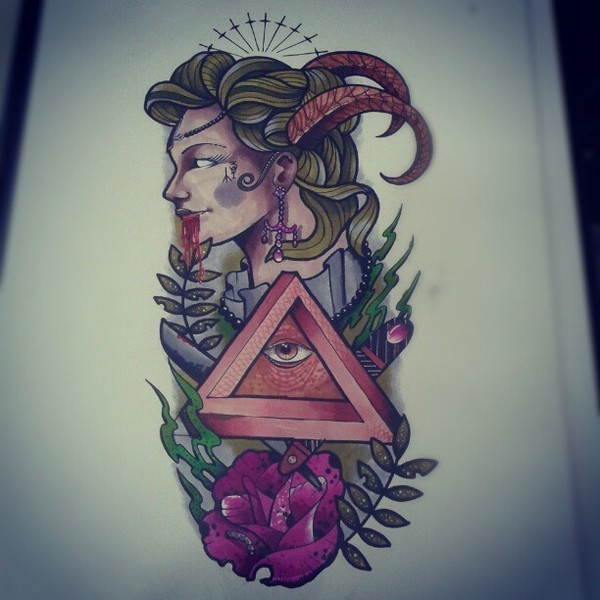 上帝之眼山羊女郎_上帝之眼图案大全_纹身图吧