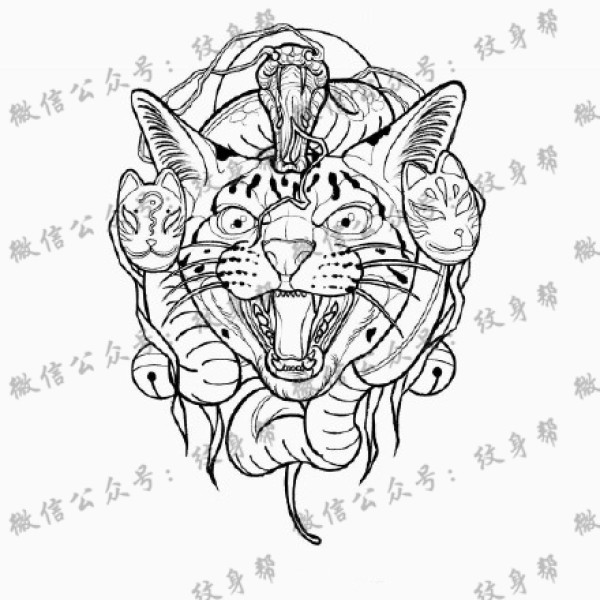 半甲唐狮手稿 传统的9款唐狮主题半甲纹身手稿图片