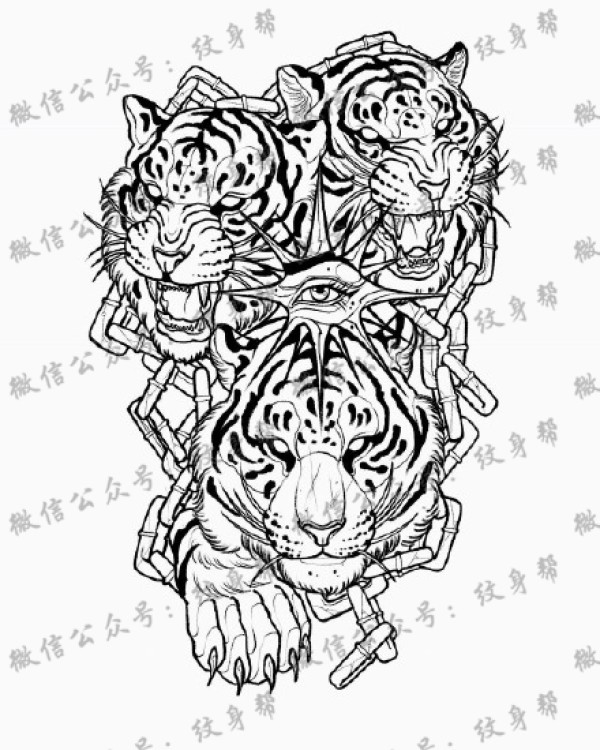半甲唐狮手稿 传统的9款唐狮主题半甲纹身手稿图片