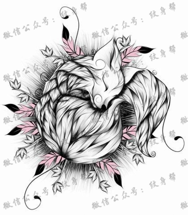 一组16张狐狸纹身手稿素材图案