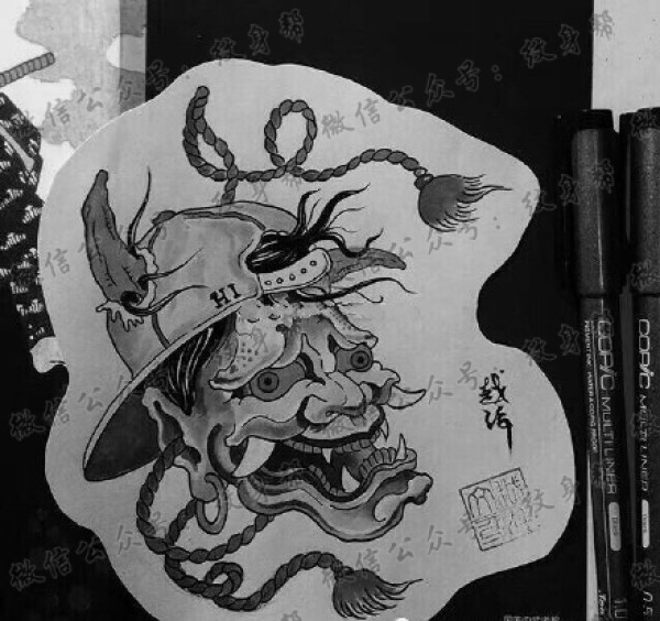 半甲唐狮手稿 传统的9款唐狮主题半甲纹身手稿图片