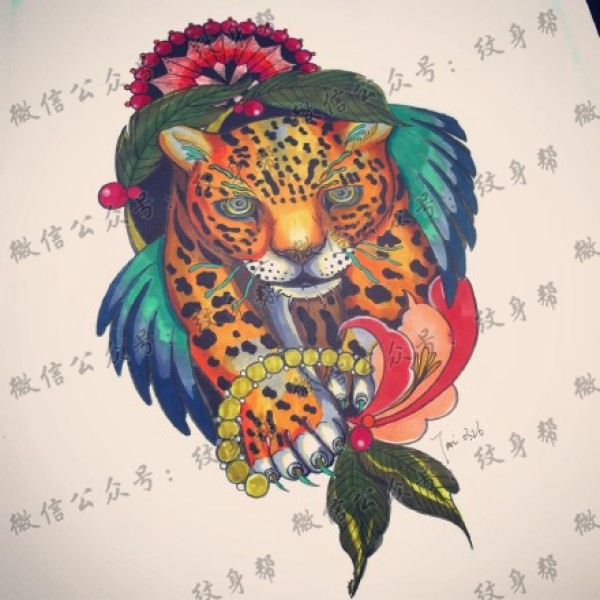 一组11张豹子纹身手稿套图