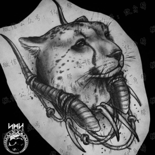 一组11张豹子纹身手稿套图