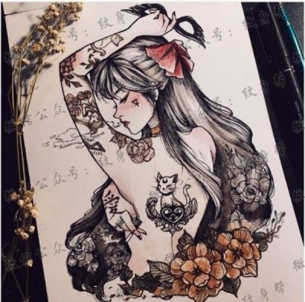 女生喜爱的简单手绘纹身图案来自于纹身师安雅