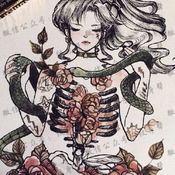 女生喜爱的简单手绘纹身图案来自于纹身师安雅