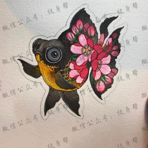 一组11张漂亮的金鱼纹身手稿图案