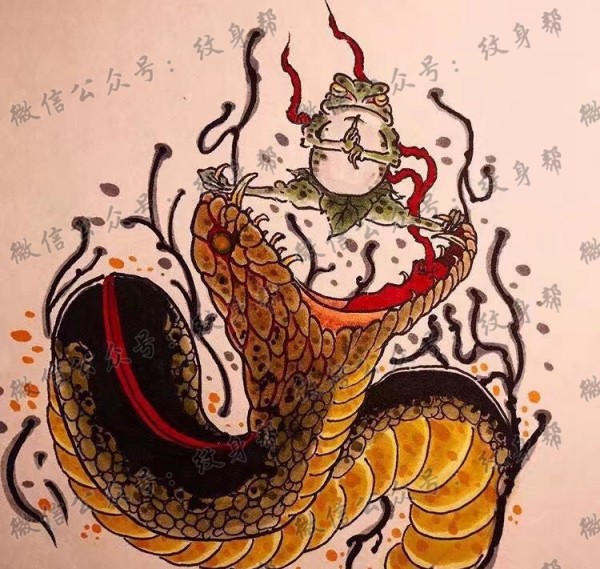 一组满背大气九龙拉棺纹身图案作品和手稿