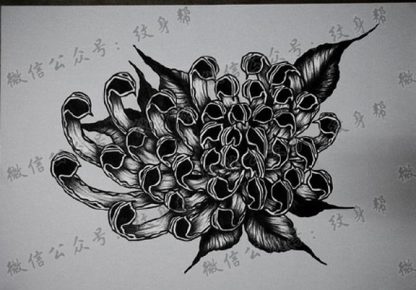 一组13张菊花纹身线稿图案素材