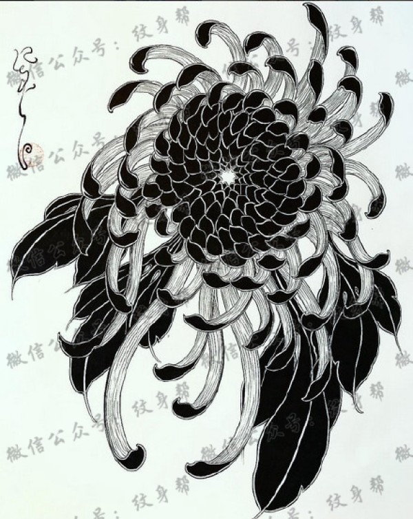 一组13张菊花纹身线稿图案素材