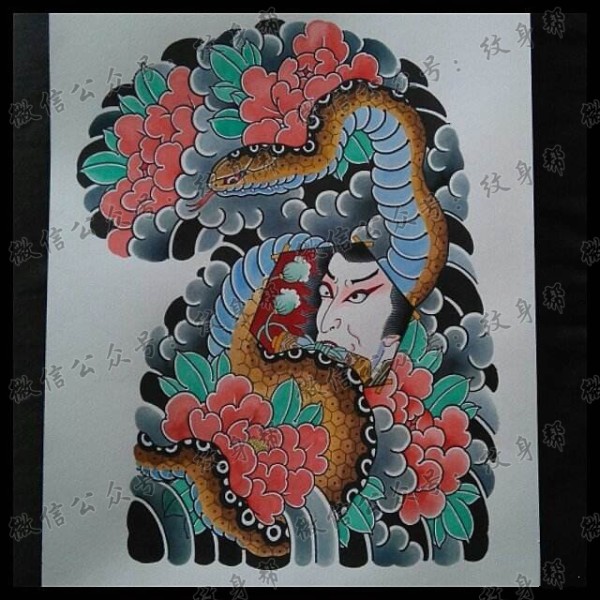 一组12张蟒蛇牡丹纹身手稿素材图案