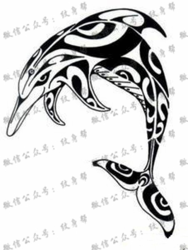 可爱的海豚纹身手稿素材图案