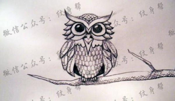 一组漂亮的猫头鹰纹身手稿素材图案